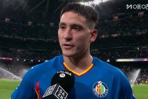 体育资讯03月03日讯 西甲第26轮,皇马对阵赫塔费。进球的萨特里亚诺中场休息时接受采访。